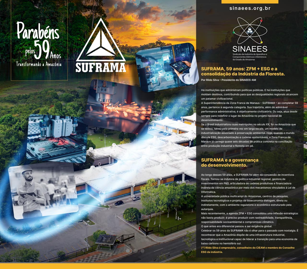 Celebrar os 59 anos da SUFRAMA não é olhar para o passado com nostalgia. É reconhecer que a Amazônia dispõe de uma infraestrutura industrial, tecnológica e institucional capaz de liderar a transição para uma economia de baixo carbono no hemisfério sul.
